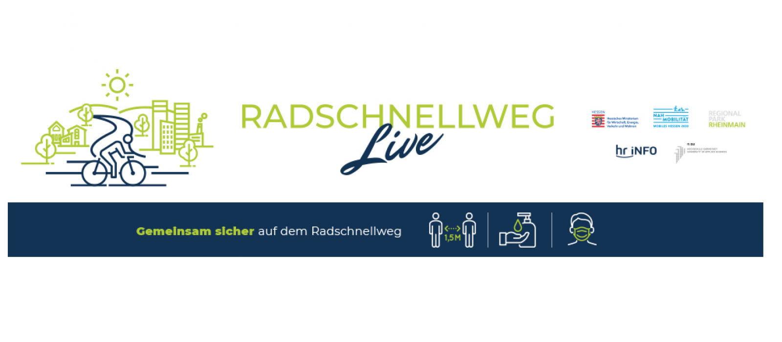 Das Start-Event „Radschnellweg live“ ist ein Projekt des Regionalparks Rhein Main in Kooperation mit dem Ministerium für Wirtschaft, Energie, Verkehr und Wohnen sowie den beteiligten Kommunen, der Hochschule Darmstadt und hr iNFO.
