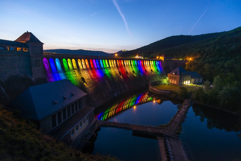 Ederseestaumauer mit Beleuchtung